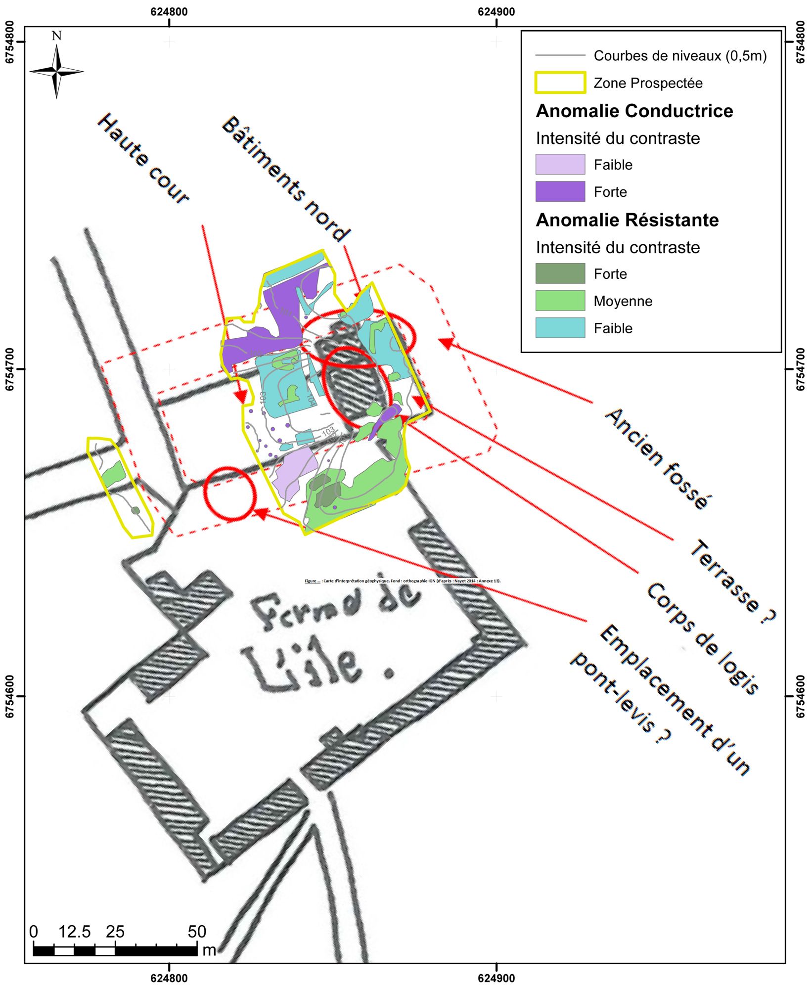 Le travail mené précédemment avait permis de confirmer qu'une habitation seigneurale était attestée dès le 14e siècle par les sources écrites à cet endroit. Initialement, le château s'élevait sur une île de la Loire, rattachée progressivement à la rive sud du fleuve suite à l’édification d’une levée en 1571. L'étude menée a permis de mieux comprendre la construction et les fonctions de certains espaces du corps de logis édifié en brique et en pierre dans la première moitié du 16e siècle par Jacques Groslot (riche bourgeois anobli, bailli d'Orléans). Certaines transformations de la fin de l'époque moderne et de l'époque contemporaine ont put être appréhendées. Grâce à un relevé photogrammétrique, des restitutions numériques en 3D du bâtiment ont été produites (en collaboration avec Laurent Josserand de Polytech Orléans). L'étude des sources textuelles et iconographiques a livré des données inédites sur le site, l'environnement du château et sa basse-cour. Une propesction géophysique a également été menée, elle a permis de préciser que le château se situait sur une plateforme légèrement surélevée de plan rectangulaire, ceinte par un fossé. Elle a aussi confirmé la présence de vestiges d'occupation médiévale et renaissance.