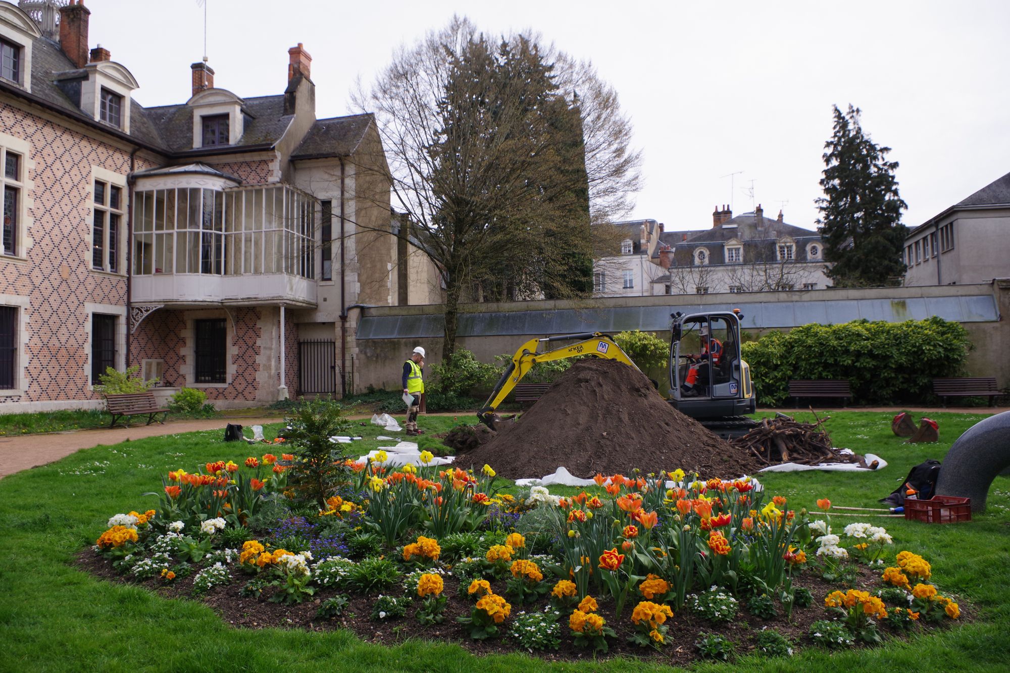 La requalification du jardin de l’Hôtel Groslot et le projet d’extension du conservatoire de musique par la ville d’Orléans ont été précédés d’une opération de diagnostic menée de fin mars à mi-avril 2024. L’Hôtel Groslot, construit au XVIe siècle, est l’un des symboles de la revalorisation des anciens faubourgs d’Orléans, longtemps laissés à l’extérieur des limites fortifiées de la ville et sacrifiés pour la défense de la ville au cours de la Guerre de Cent Ans.
