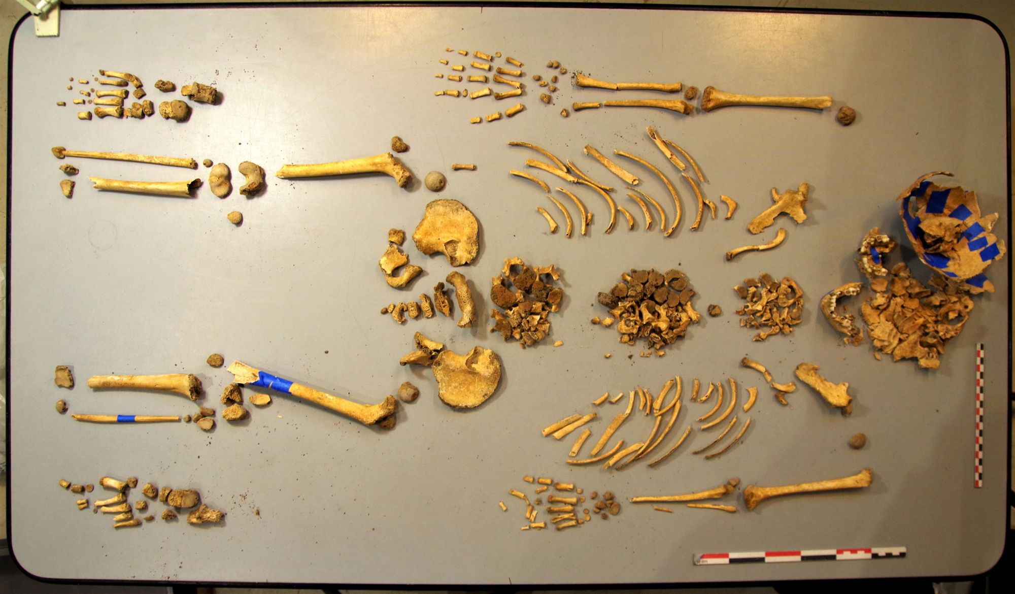 Une fois lavés et séchés, les ossements humains sont à la disposition de l’archéo-anthropologue, le spécialiste de l’étude des restes humains en contexte archéologique.