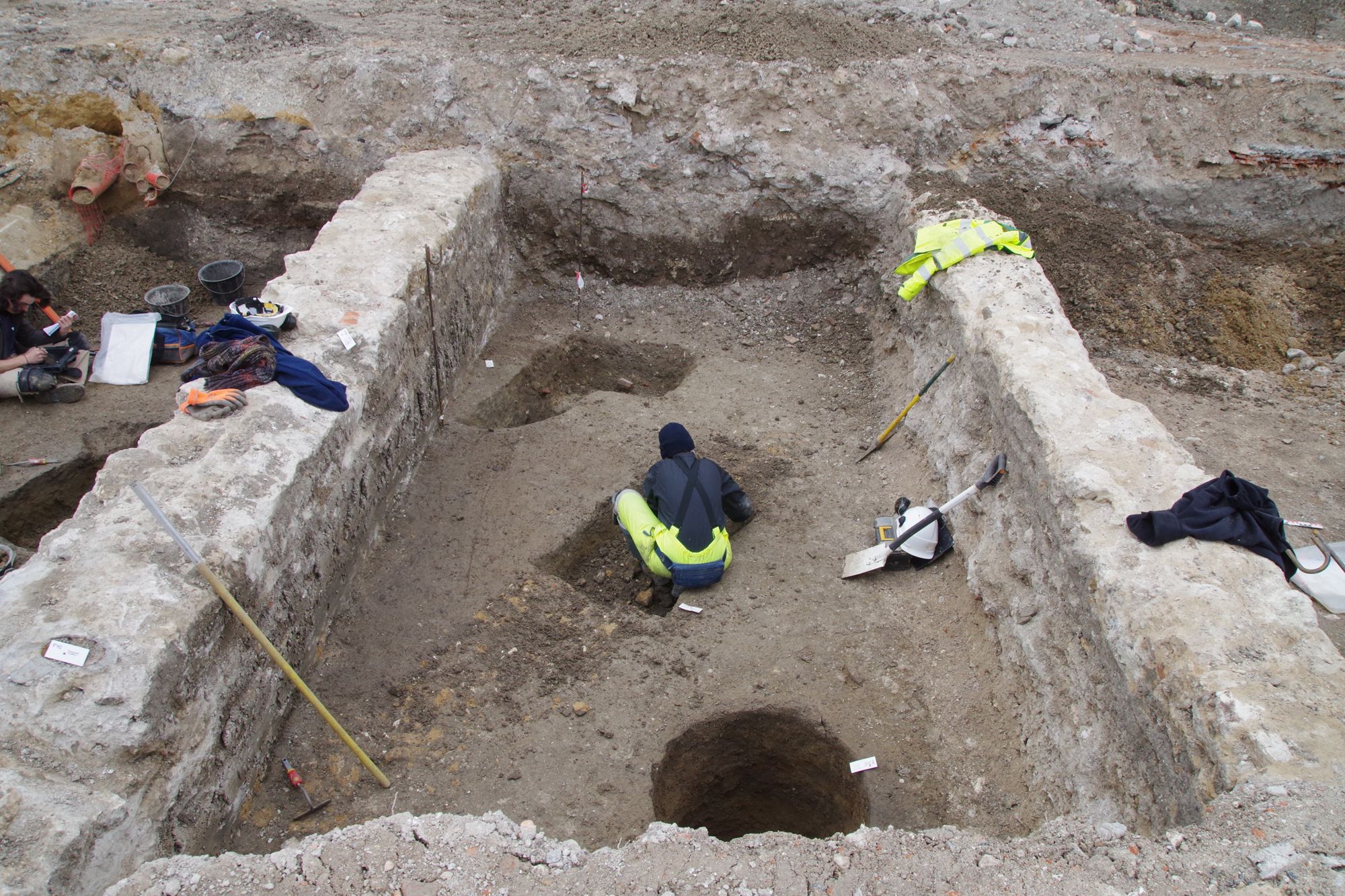 📣 Alors que le chantier continue, une nouvelle tranchée a été ouverte et de nouvelles structures archéologiques ont pu être documentées. Pelles et truelles en main, les archéologues s'affairent ! Parmi les découvertes réalisées cette semaine se trouvent un sol en tomettes moderne, plusieurs fosses antiques qui contenaient du mobilier archéologique et un probable cellier (toujours en cours de fouilles !).