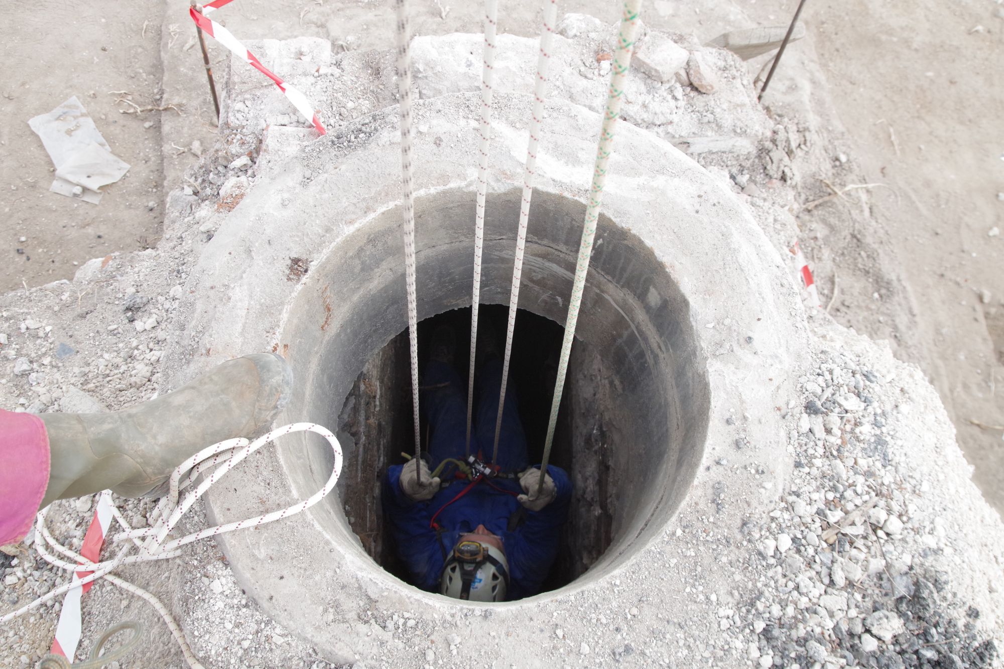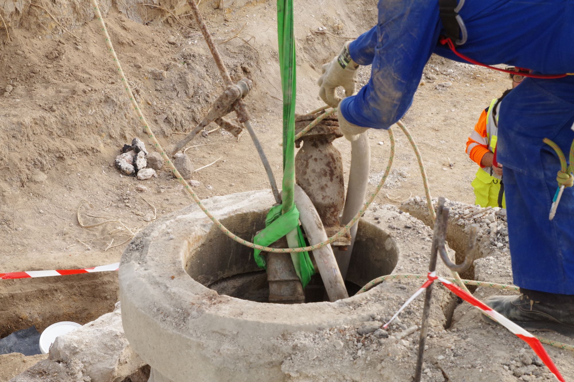 Afin de répondre à cette question, une équipe de spéléologues de l'association "Groupe d'amis Spéléologues du Loiret" est venue nous prêter main forte afin de descendre dans l'ouvrage, d'inspecter le fond et de remonter les éléments de machinerie coincés à l'intérieur.
