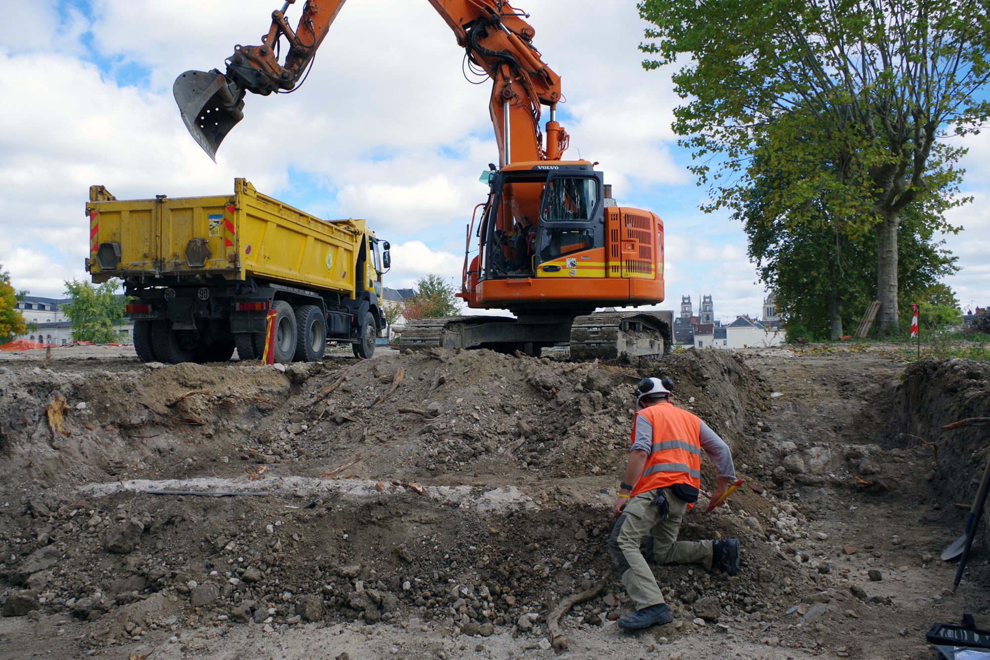 Le 03 octobre, une nouvelle phase de fouille a débuté sur le site de l'ancien Hôpital Porte-Madeleine d'Orléans. L'équipe archéologique intervient dans le prolongement sud de la zone ouverte entre juin et septembre. L'occasion d'observer le prolongement de certains vestiges sur cette nouvelle zone de fouille (par exemple, le fossé antique). Plusieurs murs des anciens bâtiments de l'hôpital (depuis le XVIIe s.) ont déja été découverts.