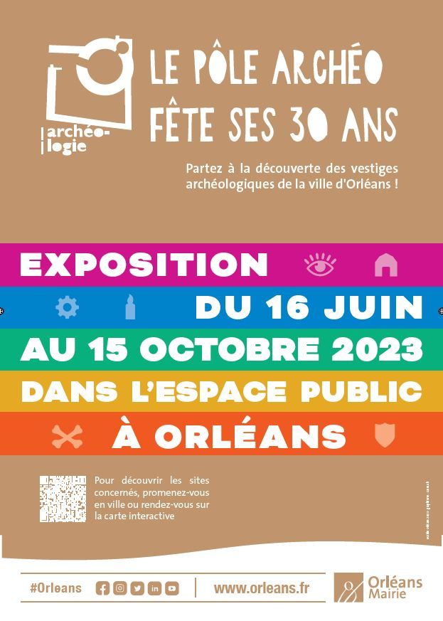 Créé en 1992, le Pôle d'archéologie de la Ville d'Orléans a conduit sa première intervention archéologique en 1993. Pour fêter 30 ans d'activité, nous vous proposons une exposition urbaine mettant en valeur 30 sites qui ont contribué au renouvellement des connaissances sur l'Histoire d'Orléans.