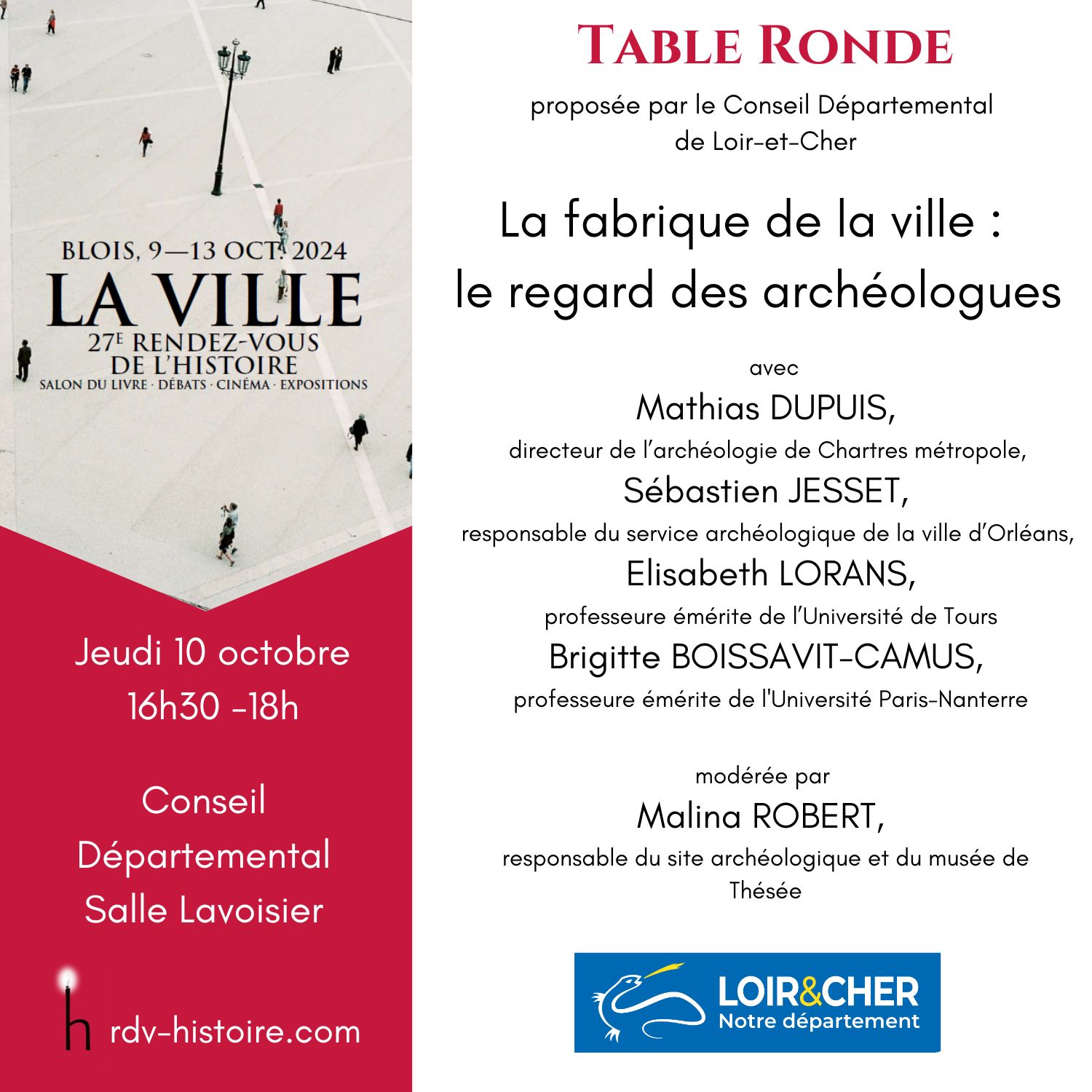 Le thème discuté est : "La fabrique de la ville : le regard des archéologues".