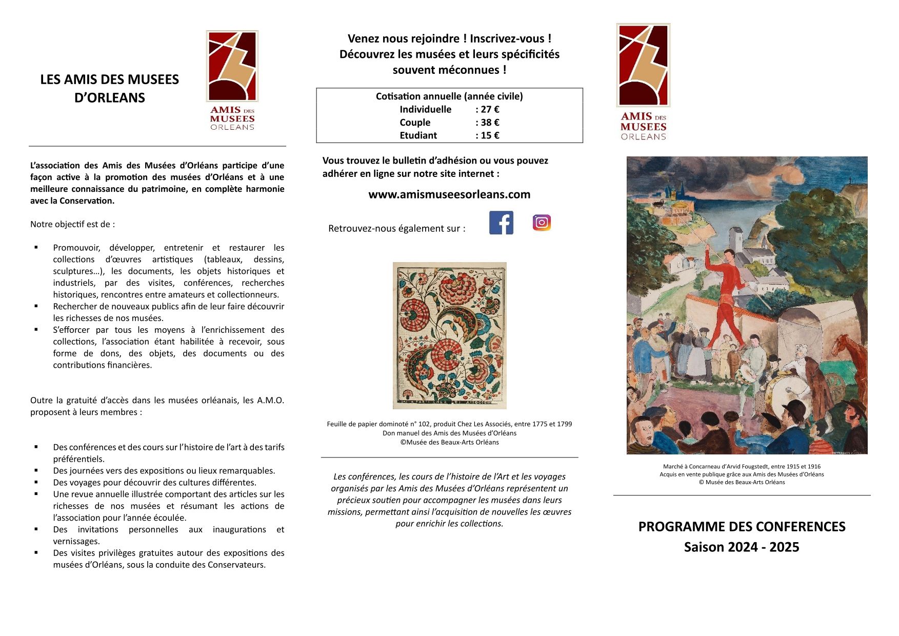 L’association des Amis des Musées d’Orléans participe d’une façon active à la promotion des musées d’Orléans et à une meilleure connaissance du patrimoine, en complète harmonie avec la Conservation.