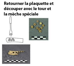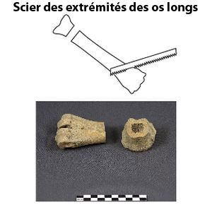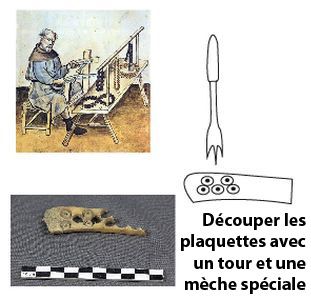 Au sein d’une couche de dépotoir datée de la deuxième moitié du XVIIe siècle, plusieurs fragments d’os animaux ont été découverts. Certains d’entre eux correspondent à des déchets de consommation (bœuf, cochon, capriné, oie) mais d’autres portent des traces de découpe et de mise en forme caractéristiques d’un atelier de travail de l’os. La production identifiée est celle d’un patenôtrier. Cet artisan fabriquait à la fin du Moyen Âge et à l’époque moderne des perles dont bon nombre devaient servir à la confection de chapelets. Ils produisaient également des boutons et des dés à jouer.