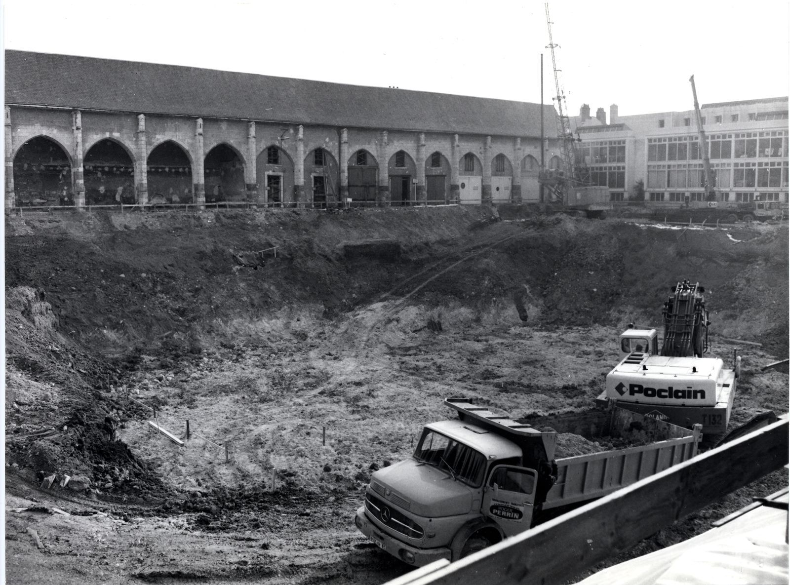 Les premiers travaux d’envergure sont les marchés couverts dans le quartier de la Charpenterie en 1968-1969, suivis des vastes chantiers aux abords de la Cathédrale de 1977 à 1980 (Saint-Pierre-Lentin, Saint-Michel et le mail Pothier, ensemble d’une superficie de 1,3 ha) et du Campo Santo dont la destruction du grand cimetière marquera les esprits à la suite d’un scandale retentissant qui s’étalera dans la presse de 1977 à 1979.