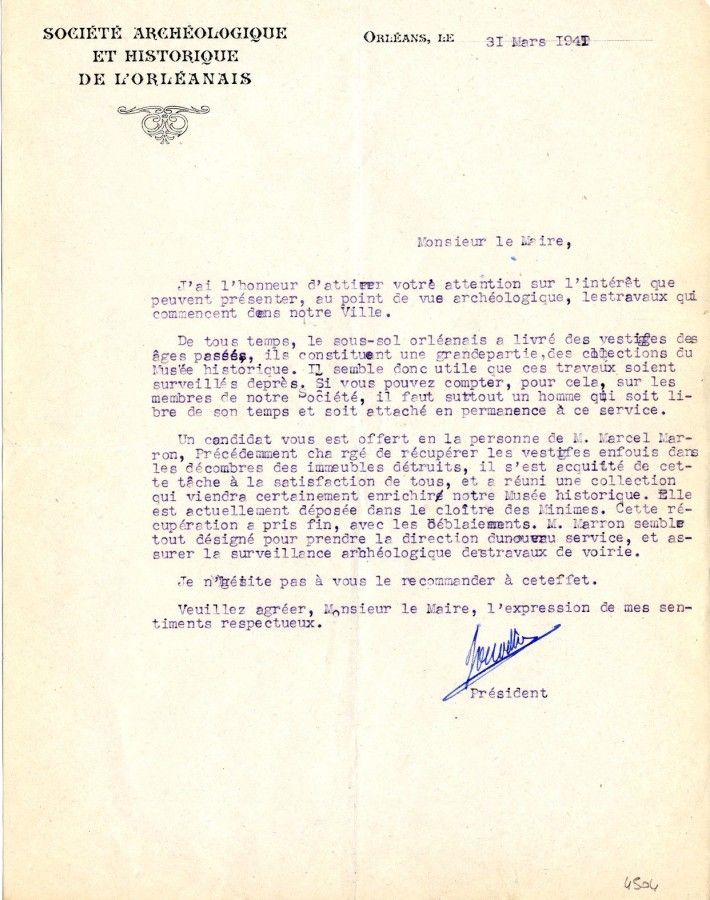 Pierre Jouvellier, directeur du musée historique à partir de 1938 et Marcel Marron, premier archéologue municipal, chargé de l’inventaire et de la sauvegarde des éléments patrimoniaux après les bombardements font partie, avec Jean Le Maire et Pierre Hamel des personnalités marquantes de cette période. Ils fouilleront les décombres du quartier ouest et suivront les travaux de la reconstruction, rapportant régulièrement leurs découvertes dans les bulletins de la Société historique et archéologique de l’Orléanais.