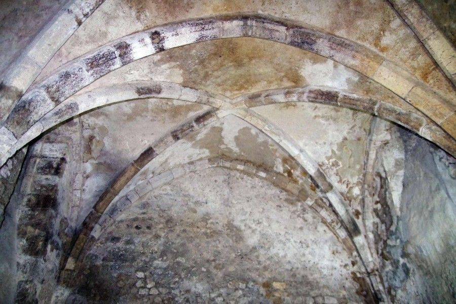 Les voûtes d'arêtes sont attestées dans une vingtaine de caves et celliers. Les retombées sont assez hétérogènes et s'effectuent avec ou sans support. Les caves et celliers à voûtes sur croisées d'ogives à double chanfrein, sont représentés quant à eux par une trentaine d'exemples. La retombée des arcs sur les piliers engagés s'effectue avec ou sans tailloir. Afin de ne pas gêner le passage et la circulation aux abords des escaliers ou des soupiraux, ces arcs sont parfois portés par des culots et non par des piliers engagés. C'est avec ces types de voûtes qu'ont été construites les caves et celliers à supports intermédiaires (colonnes ou piliers).
