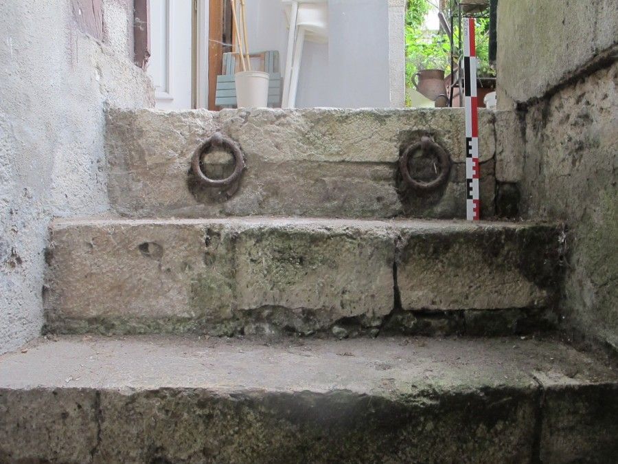 En outre, des exemples de récipients en céramique remployés pour être engagés dans les murs de caves sont attestés (fin XVe - début XVIe siècle). Situés au pied de la cage de l’escalier, ils remplissent la fonction de vide-poches ou de petites niches, peut-être pour ranger du luminaire.