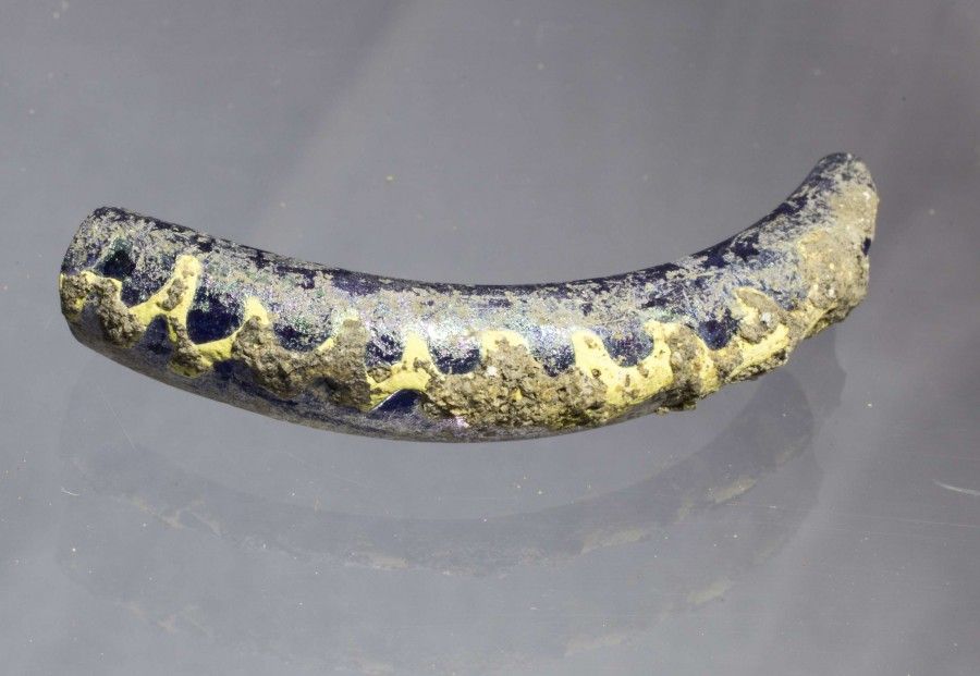 Le verre, quant à lui, provient de contrées beaucoup plus éloignées. Il est essentiellement produit sur les rives orientales de la Méditerranée. Il arrive en Gaule sous la forme de blocs massifs qui sont ensuite redistribués dans les centres artisanaux. La matière brute est ainsi transformée sur place pour produire perles et bracelets très colorés. Bleu cobalt, pourpre ou jaune, ils peuvent être décorés de filets de pâte de verre jaunes ou blancs. La reproduction des techniques de fabrication par des artisans verriers actuels a démontré l’extrême technicité des artisans gaulois qui fabriquaient ces parures. Aujourd’hui encore, certains types de décor sont quasiment impossibles à reproduire.