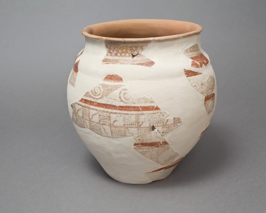 La céramique à engobe blanc et à surface peinte est extrêmement répandue dans le nord-est du Massif Central aux IIe et Ier siècles av. J.-C. et jusqu’au Ier siècle ap. J.-C. Le répertoire ornemental comprend à la fois des décors géométriques, végétaux et zoomorphes. Avant de recevoir leur décor, les vases subissent un lissage de la surface et un séchage. Une fois la pâte durcie, le potier dispose sur le vase un engobe blanc, puis le cuit. Après la cuisson, il peut passer au décor complémentaire. Les motifs sont le plus souvent réalisés dans des tons rouges.