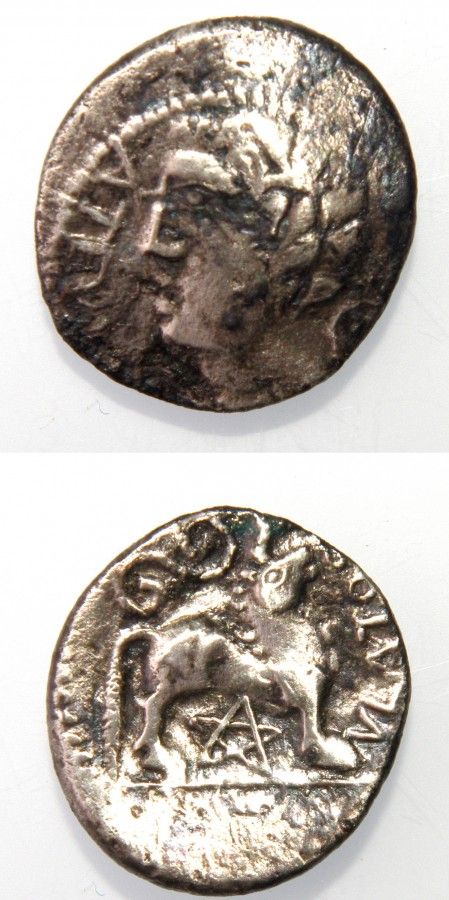 Droit : ATEVLA, buste juvénile ailé à la chevelure bouclée