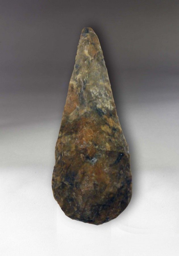 Human occupation of the banks of the Loire, where Orléans stands nowadays, has been etablished from the beginning of Old Stone Age (Paleolithic, 800 000 – 8 000 BC). The bifacial-tool presented here is the oldest trace of human dwellings in Orléans. It dates back to the Acheulean period (800 000 – 100 000 BC), a prehistoric civilization geographically extending from Africa to China, and which was characterized by a huge production of biface-tools.