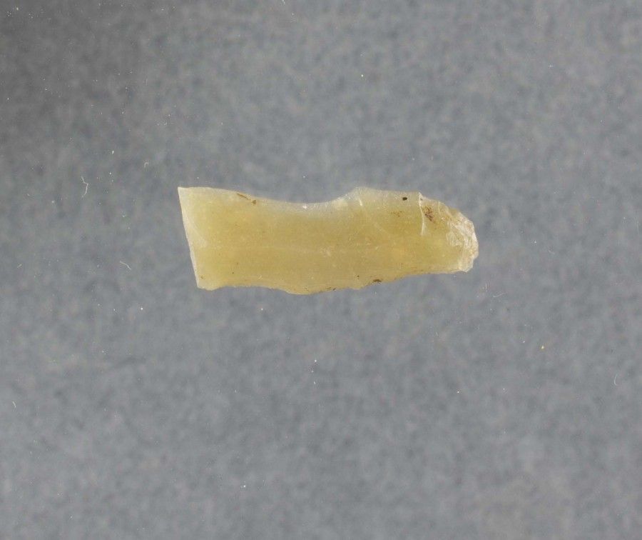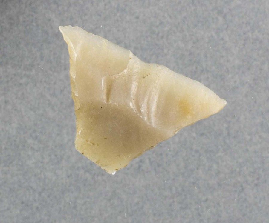 Particularité : silex gris bleuté avec quelques tâches rousses, conservé intact, non roulé et encore coupant