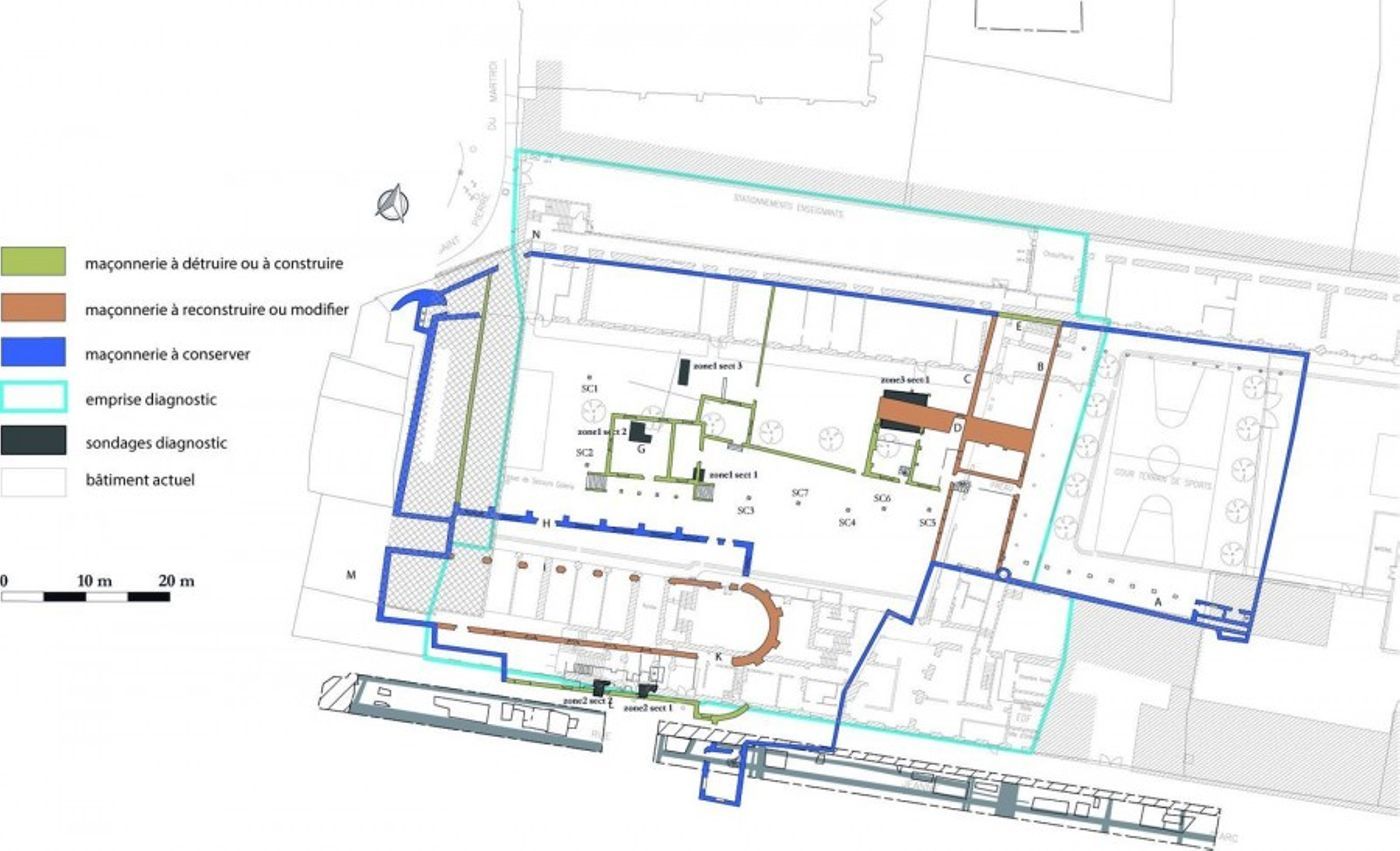 Après le départ des Jésuites en 1762, malgré les travaux importants du XIXe siècle générés par la restructuration profonde de ce site vétuste, nous n’enregistrons aucun travaux impactant profondément le sous-sol sur cette partie du Collège, l’essentiel consistant en démolitions, réhaussement, construction légère ou construction prenant appuis sur des fondations plus anciennes, à l’exemple du bâtiment sur la rue Jeanne d’Arc fondé sur l’ancienne église Saint-Samson.