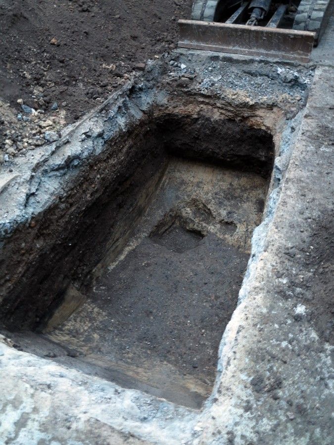 Deux sondages ont été réalisés durant cette opération de diagnostic : un premier à l’aide d’une petite pelle mécanique dans l’arrière-cour de la parcelle ; le second à la main, dans une ancienne cave conservée lors de la construction du laboratoire d’analyse dans les années 1960.