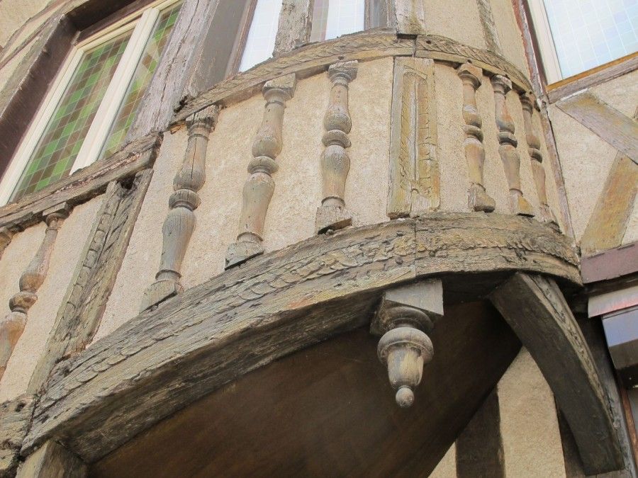 La maison édifiée à la fin du XVe siècle ou au début du siècle suivant (phase 1) se caractérise par une façade à panneaux de croix de Saint-André, dont les étages sont encorbellement. Chaque étage est ouvert par une fenêtre à meneau et à traverse (croisée) encadrée de deux petits jours rectangulaires. Le comble était doté d’une lucarne-pignon.