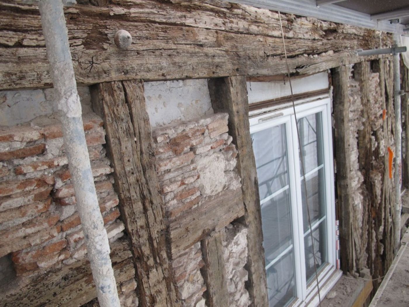 L’étude archéologique du bâti de la façade de la maison n° 8 rue du Bœuf-Sainte-Croix s’est effectuée en novembre 2014 dans le cadre des travaux de ravalement (campagne menée par la ville d’Orléans). La pose de l’échafaudage et la dépose de l’enduit ont permis la réalisation d’observations et d’un relevé. Cette étude a été complétée par une visite des espaces intérieurs de l’habitation (cour, cave, rez-de-chaussée et comble).
