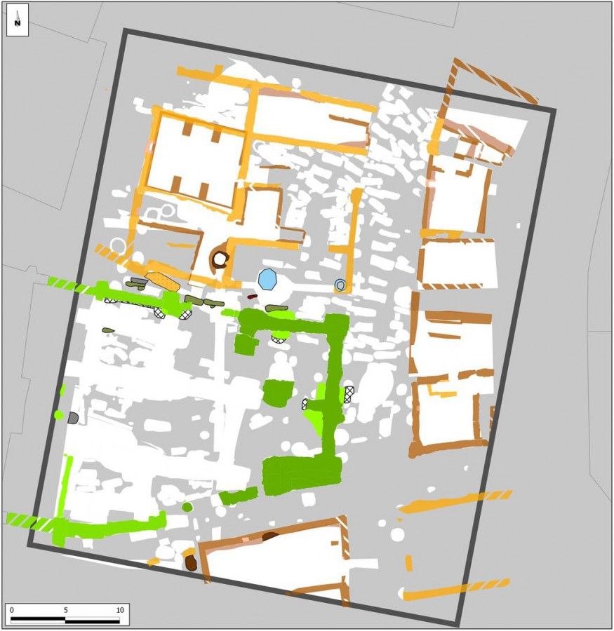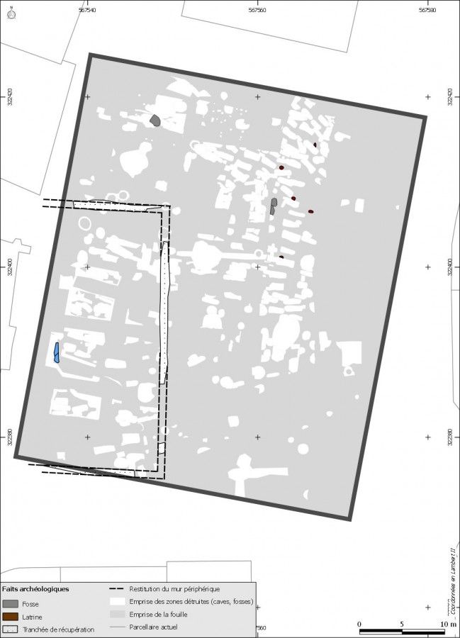 La division de l’espace en deux parties, qui affectera le site jusqu’à l’époque contemporaine et qui paraît trouver son origine à la période précédente, est confirmée ici avec la mise en place d’un secteur d’habitat dans la moitié sud du terrain. Celui-ci apparaît très nettement le long de ce qui semble être un espace de circulation vierge de tout vestige et qui se maintiendra en partie jusqu’à aujourd’hui sous le nom de rue Saint-Paul.