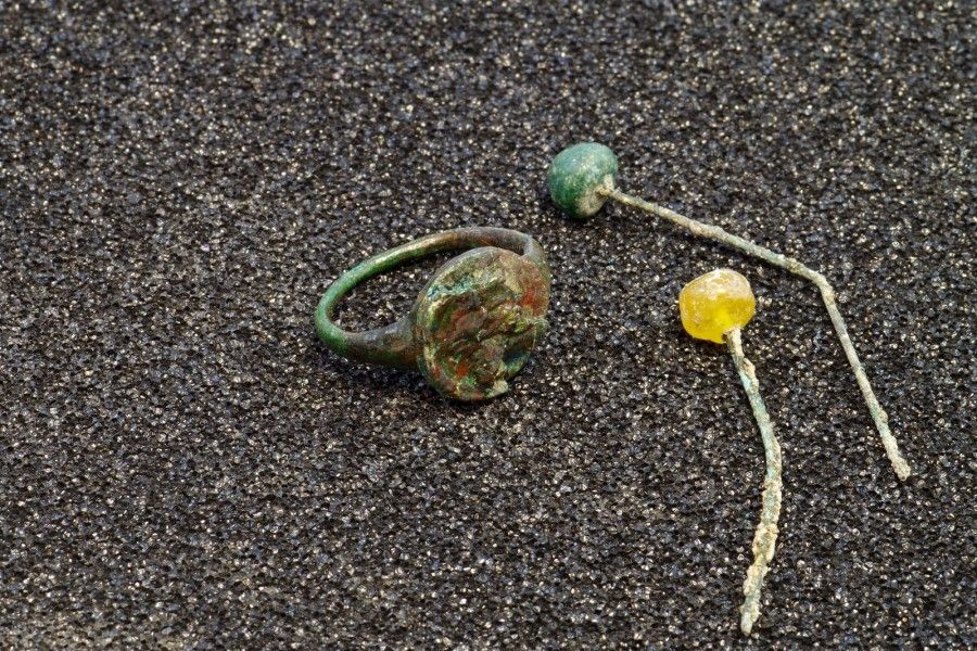 Pourtant, celui-ci ne doit pas être bien loin puisque les comblements des fosses d’extraction renferment un mobilier domestique abondant et plutôt caractéristique d’une population urbaine, avec entre autre des tessons de céramiques très décorées et des épingles à tête en pâte de verre.