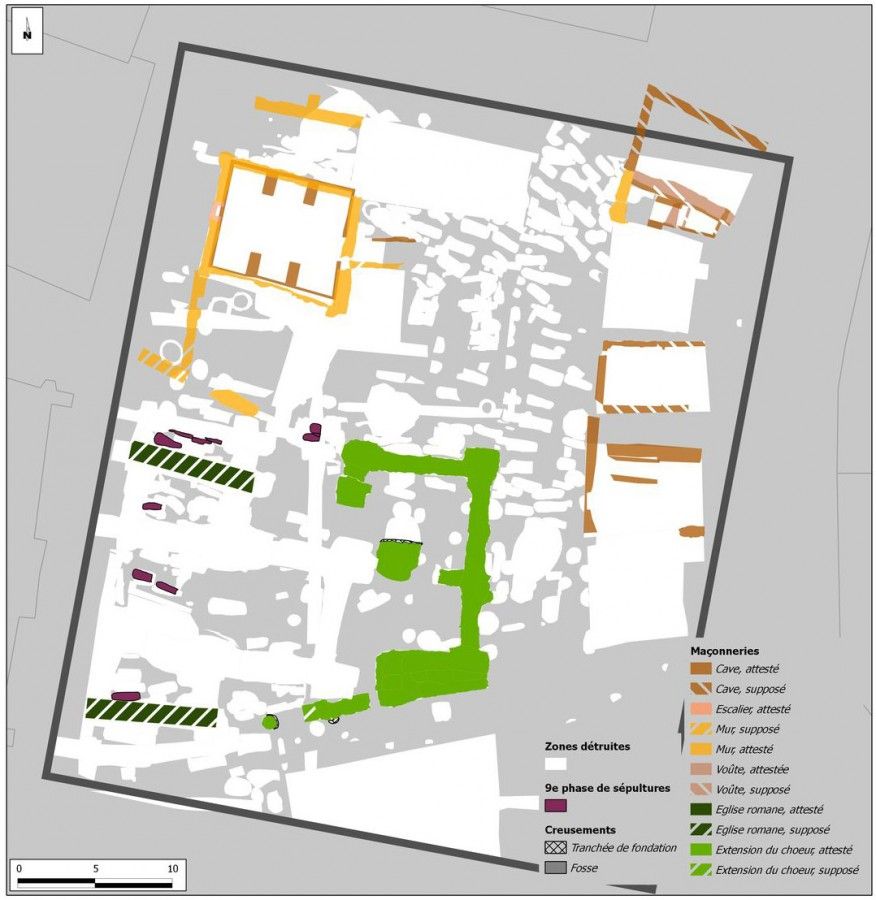 Avant une transformation radicale du secteur, une phase de nivellement est soupçonnée. Là où les niveaux sont suffisamment bien conservés, nous avons pu observer des niveaux de sols préservés du tout début du XIe siècle au contact des niveaux antiques, indiquant de ce fait un fort terrassement.