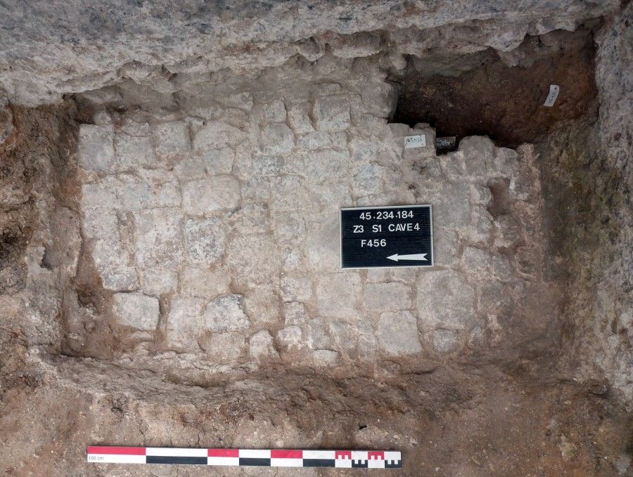 La présence humaine la plus ancienne correspond à un terrassement massif du coteau dans une volonté manifeste de niveler et d’assainir la zone, à partir du milieu du Ier siècle avant J.-C. Tous les sols antérieurs sont évacués et un niveau de circulation est aménagé sur les dépôts naturels d’alluvions. Ce premier sol construit, observé en de multiples sondages sur toute la surface d’emprise de la fouille, est constitué d’un cailloutis de galets de silex damés. Il a livré, entre autres, une proportion anormalement élevée d’amphores concassées, ainsi qu’un fragment de crâne d’un jeune enfant et un humérus de rapace (pygargue). Le mobilier permet une datation de ce sol de la seconde moitié du Ier siècle avant J.-C.