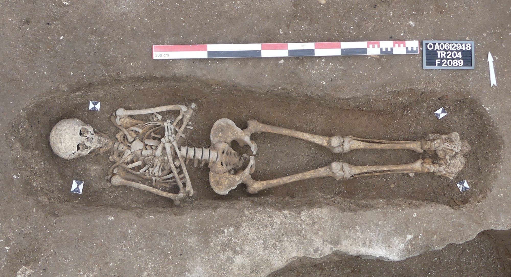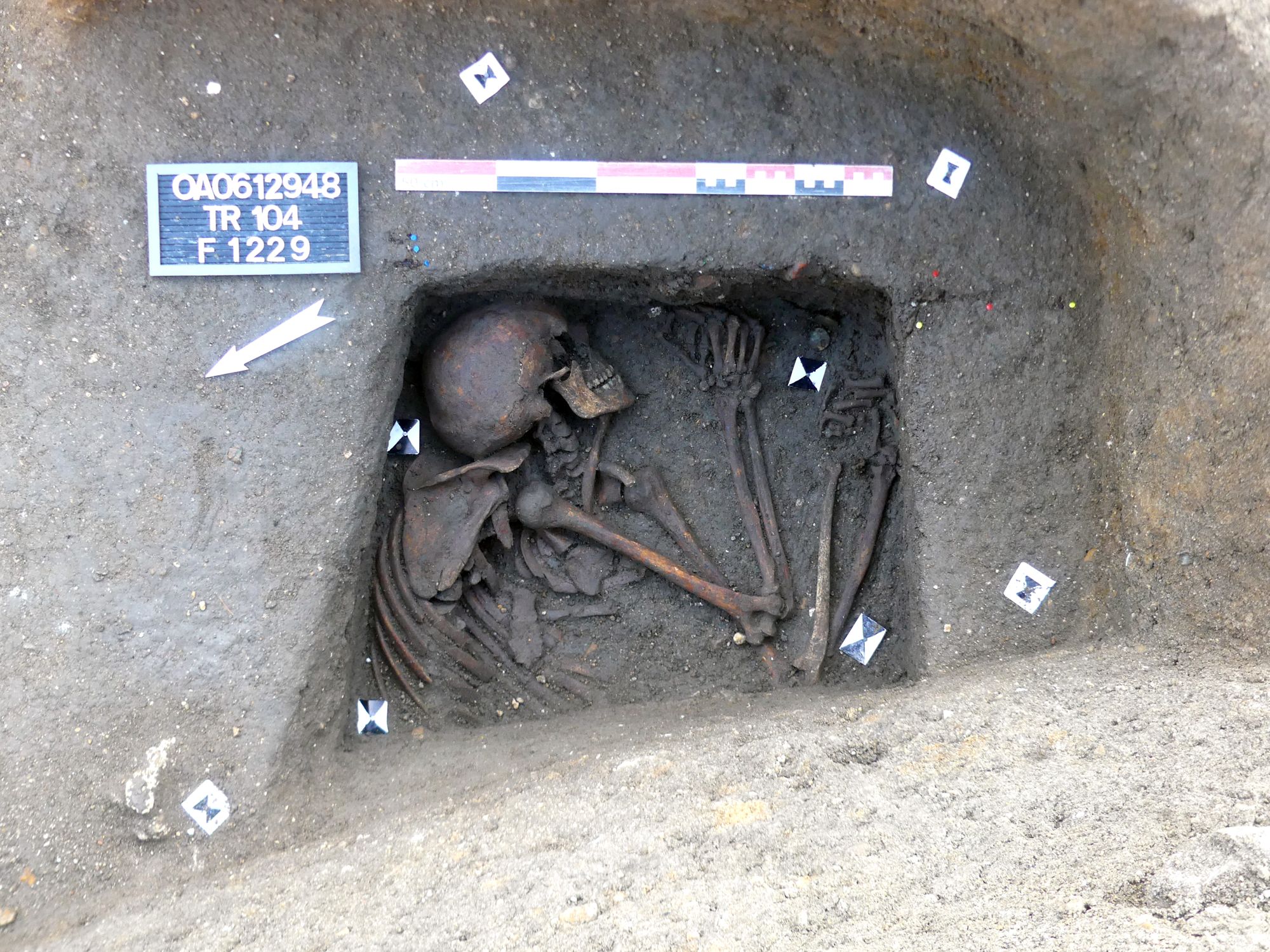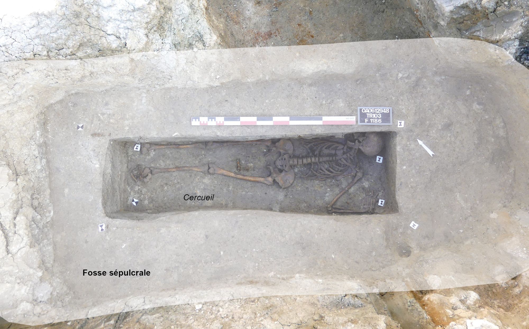 La parcelle de l’hôpital semble peu occupée durant le haut Moyen Âge et se situe clairement à l’écart de la ville. Seules quelques sépultures (six ont été découvertes : quatre lors de cette fouille, une lors du diagnostic archéologique en 2016 et une dans les années 1970), plus ou moins isolées, témoignent d’une occupation de ce secteur à cette période.