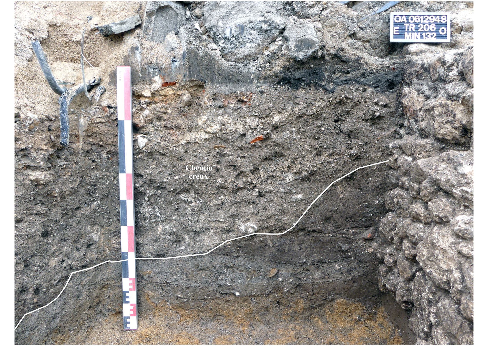 Sur une grande partie de la surface explorée lors de cette opération, le substrat mis au jour correspond au faciès des sables et argiles de l’orléanais. Dans de rares secteurs, cet horizon est absent et le calcaire argileux apparaît alors directement sous les remblais anthropiques. On note la présence, sur la moitié sud du site, d’une couche de sable brun très fin qui recouvre les niveaux naturels et qui a livré quelques éléments de céramique non tournée et des silex taillés, témoignant d’une occupation de cet espace à la fin du néolithique ou au cours de l’âge du Bronze.