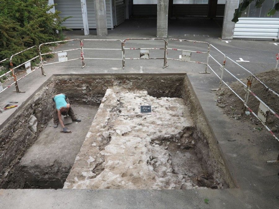 Lors du démarrage de l’opération de fouille, les premières couches supérieures (voiries actuelles et remblais contemporains) sont décapées à l’aide d’une pelle mécanique. Ensuite, la surface mise au jour est nettoyée, puis les structures archéologiques sont fouillées, des plus récentes aux plus anciennes. Tout au long de la fouille, ces structures sont documentées par un enregistrement précis : description, photographies, dessins et parfois relevés en 3D. Le mobilier archéologique est prélevé dans chaque couche archéologique. Il sera ensuite étudié après la fouille.