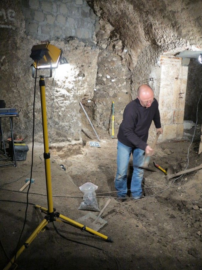 Lors du diagnostic, on procède généralement au creusement de sondages de taille limitée à l’aide d’une pelle mécanique. Dans le cadre spécifique du milieu urbain, peu accessible, le Pôle d’archéologie utilise aussi d’autres méthodes de diagnostic : sondages directement depuis les sous-sols de type caves pour atteindre les niveaux les plus anciens et carottages géotechniques. Le diagnostic concerne aussi le suivi des travaux de voirie (réseaux et requalifications).
