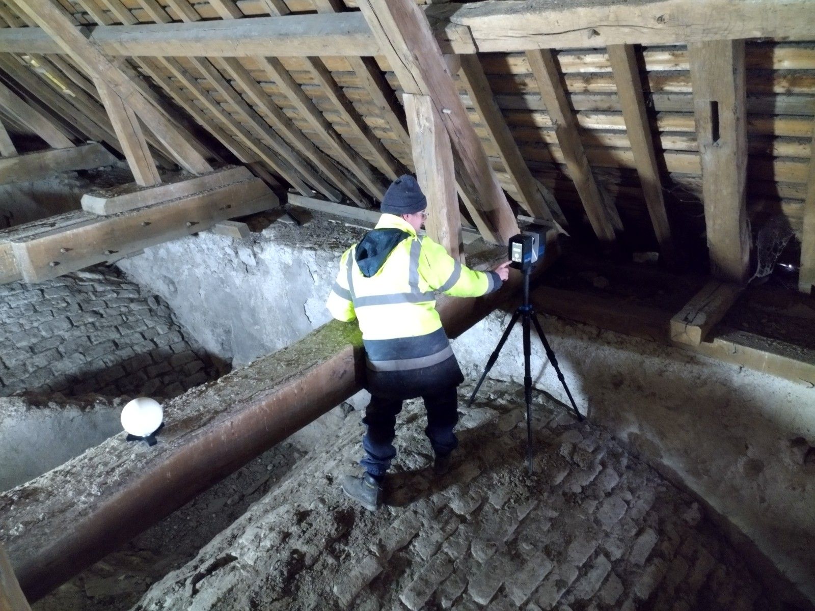 Pour l’année 2022, les efforts se sont concentrés sur la réalisation du relevé 3D de l’église et de ses abords, la campagne de géoradar et les prélèvements pour datation dendrochronologique des bois de charpente de l’église.
