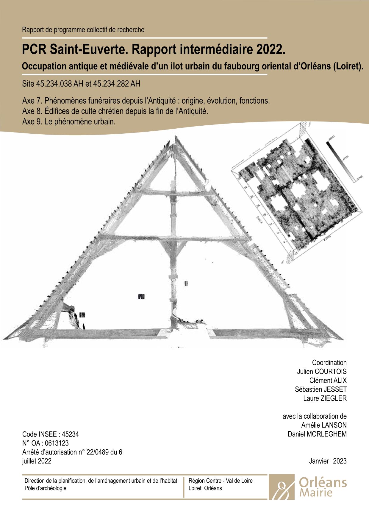 Le PCR Saint-Euverte, portant sur l’occupation antique et médiévale d’un ilot urbain d’Orléans (Loiret), a débuté en 2022 pour une durée de deux ans. L’étude de cet ilot est liée à la présence de l’église Saint-Euverte, construite au XIIe siècle, désacralisée et propriété de la ville d’Orléans, et aux nombreuses fouilles effectuées au sein du lycée Saint-Euverte qui borde l’église. Dans le cadre d'un projet de travaux menés sur l’église et d'un réexamen des données archéologiques issues des opérations préventives, ce PCR conjugue une mutualisation des moyens et un élargissement de la problématique à la modélisation de l’évolution de cet ilot depuis l’Antiquité. Ainsi, les objectifs de ce programme de recherche sont :