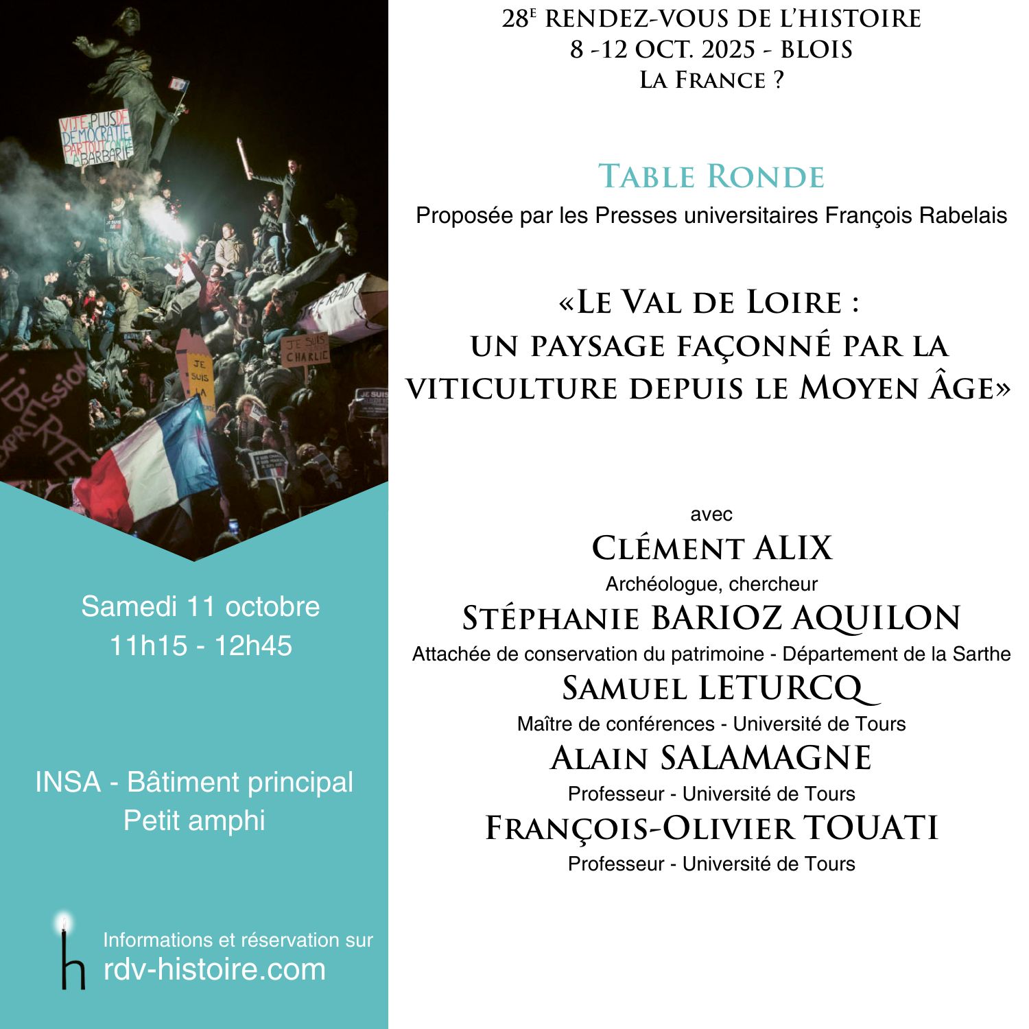 Cet évènement fait suite à la parution de l'ouvrage "Des vignes aux caves", réalisé sous la direction de Alain Salamagne, et avec les contributions de Clément Alix, Stéphanie Barioz Aquilon, Diane Carron, Mathilde Collin, Louis-Marie Coyaud, Rémi Deleplancque, Henri Galinié, Lucie Gaugain, Philippe Goldman, Bruno Guignard, Samuel Leturcq, Bruno Marmiroli, Françoise Michaud-Fréjaville, Christian Poitou †, Hadrien Rozier, Alain Salamagne & Franck Tournadre.