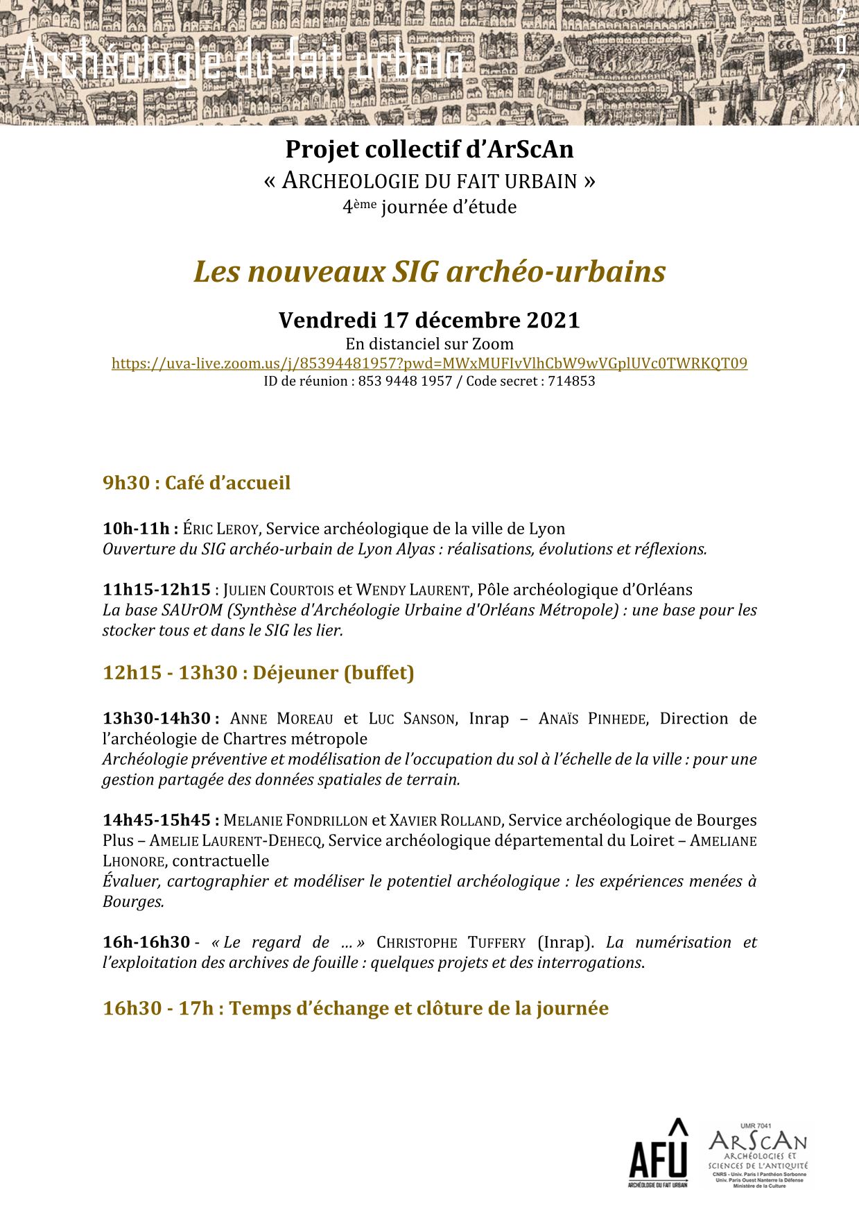 Lors de la 4ème journée de l'Archéologie du Fait Urbain (AFU) qui s'est déroulée en viso-conférence le 17 décembre 2021 qui avait pour thème Les nouveaux SIG archéo-urbains, Julien Courtois et Wendy Laurent ont présenté la communication suivante :