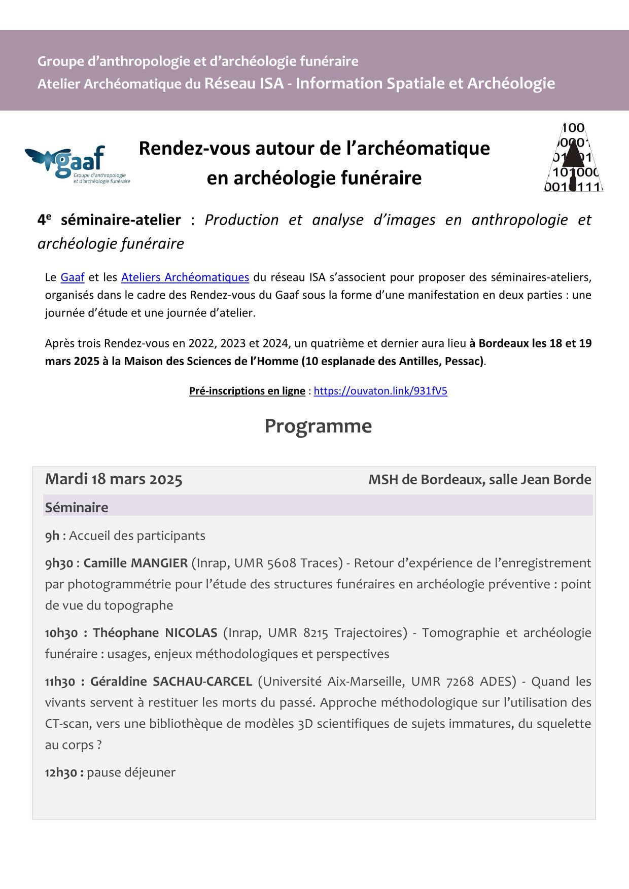 4e séminaire-atelier du GAAF : Production et analyse d'images en anthropologie et archéologie funéraire