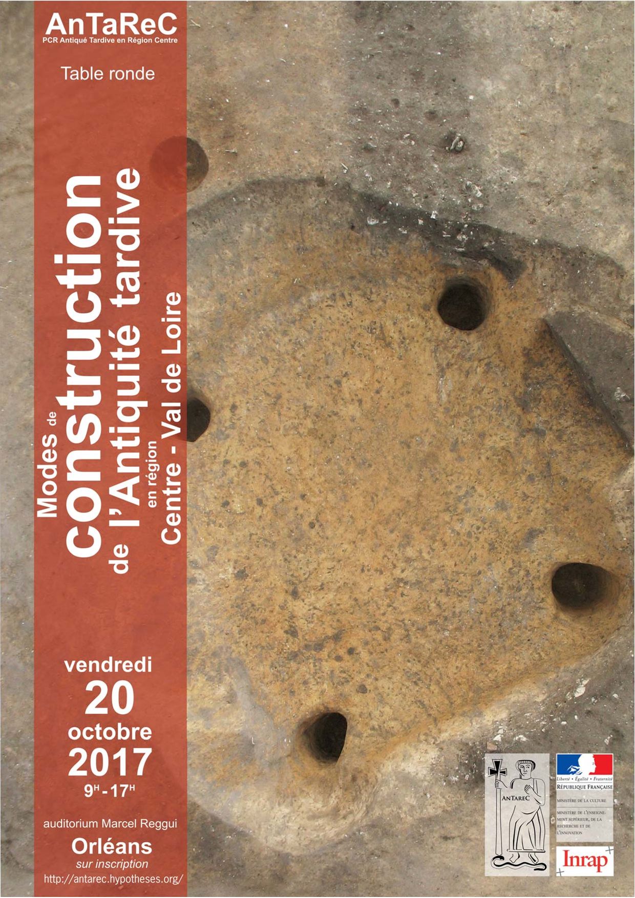 La table ronde sur les "Modes de construction de l'Antiquité tardive en région Centre-Val-de-Loire" se tiendra le 20 octobre 2017 de 9 h à 17 h à l'auditorium Marcel Reggui (Médiathèque d'Orléans).