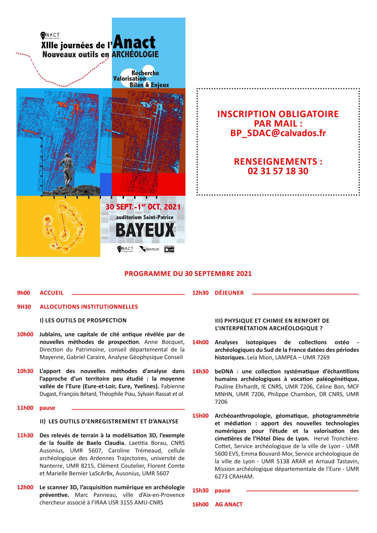 Lors des XIIIe journées de l'Association Nationale pour l’Archéologie de Collectivité Territoriale. l'Anact à Bayeux du 30 septembre au 1er octobre 2021, Julien Courtois, Wendy Laurent et Emilie Roux-Capron ont présenté plusieurs communications :