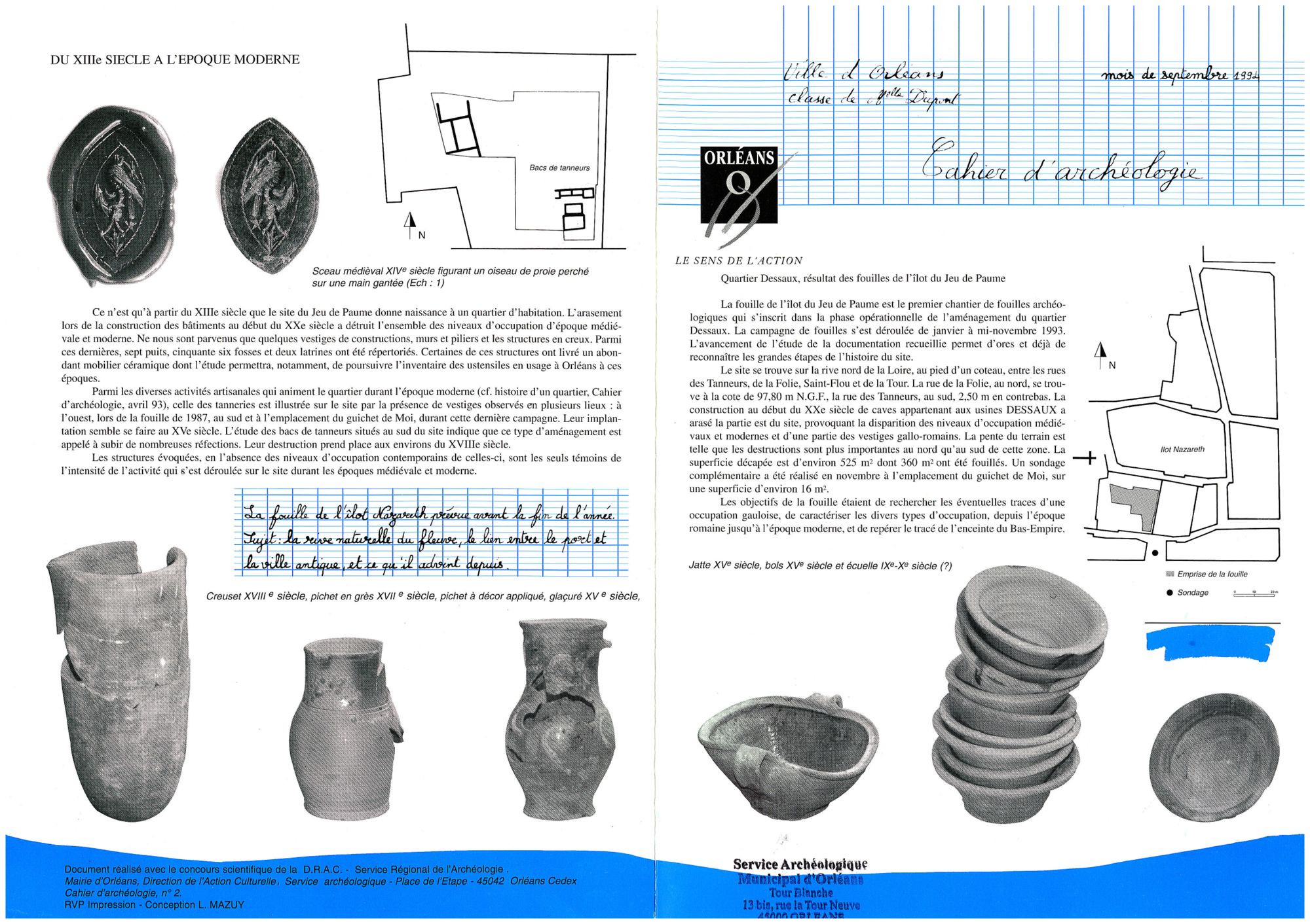 Les cahiers d'archéologie ont été édités par le service archéologique municipal entre 1994 et 2007. Cette collection de documents présente les résultats des fouilles effectuées à Orléans durant cette période.
