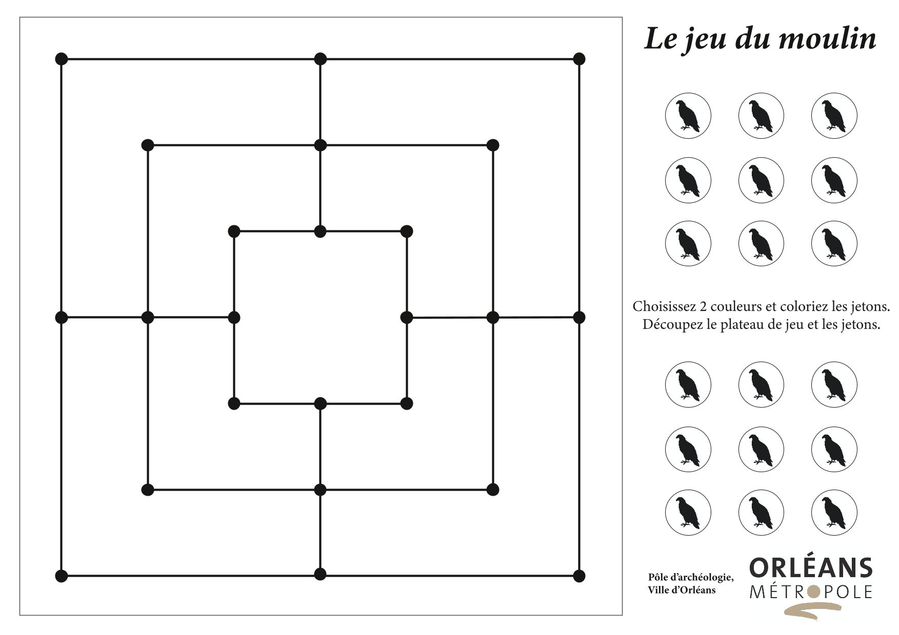 Le jeu du moulin est un jeu de société traditionnel en Europe. Il est aussi appelé « neuf hommes de Morris », « jeu de mérelles » ou « marelle ».