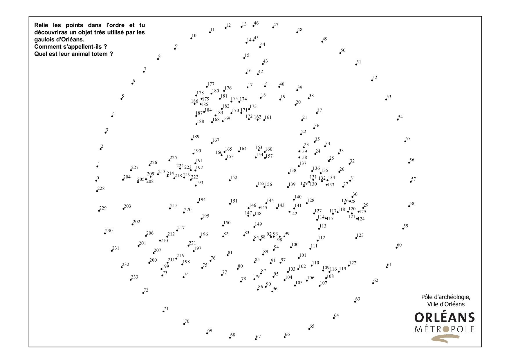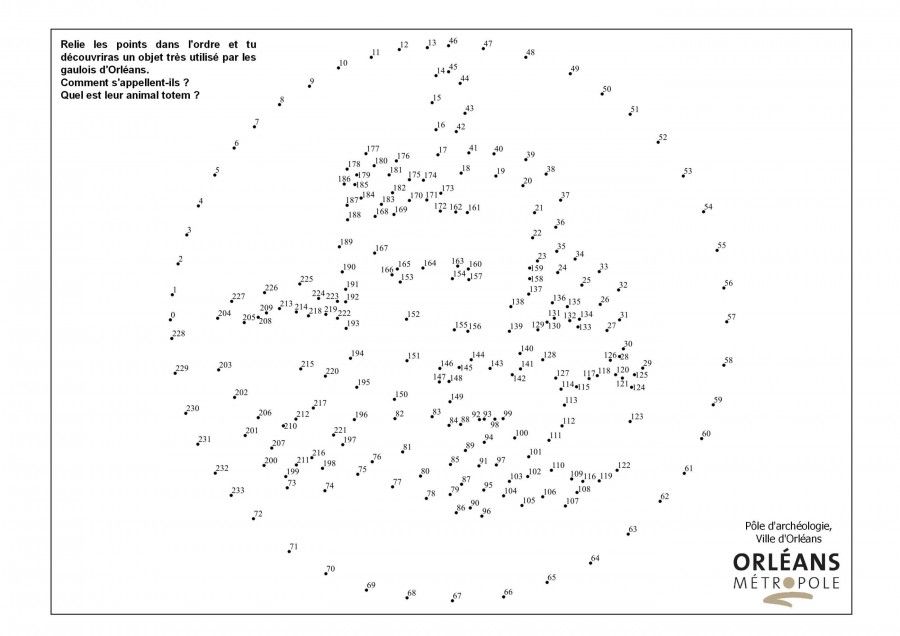Objet n° 1 Dernière modification : 23 mars 2020 Découvre l'objet gaulois qui se cache derrière les points numérotés. A télécharger et imprimer : objet n° 1 (crédits : Pôle d'archéologie, 2020) (364.4 Ko) Clique sur la réponse quand tu auras dessiné.