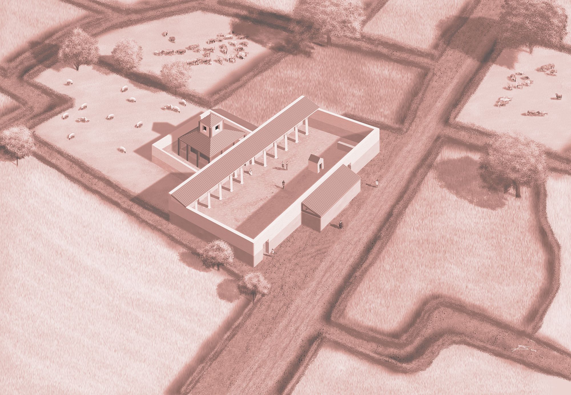 Fanum Évocation du sanctuaire de la Fontaine de l'Étuvée au IIe s. (Nicolas Treil, Inrap, 2014) Petit temple gallo-romain présentant un plan concentrique carré ou circulaire, et constitué le plus souvent d’un bâtiment entouré d’une galerie.