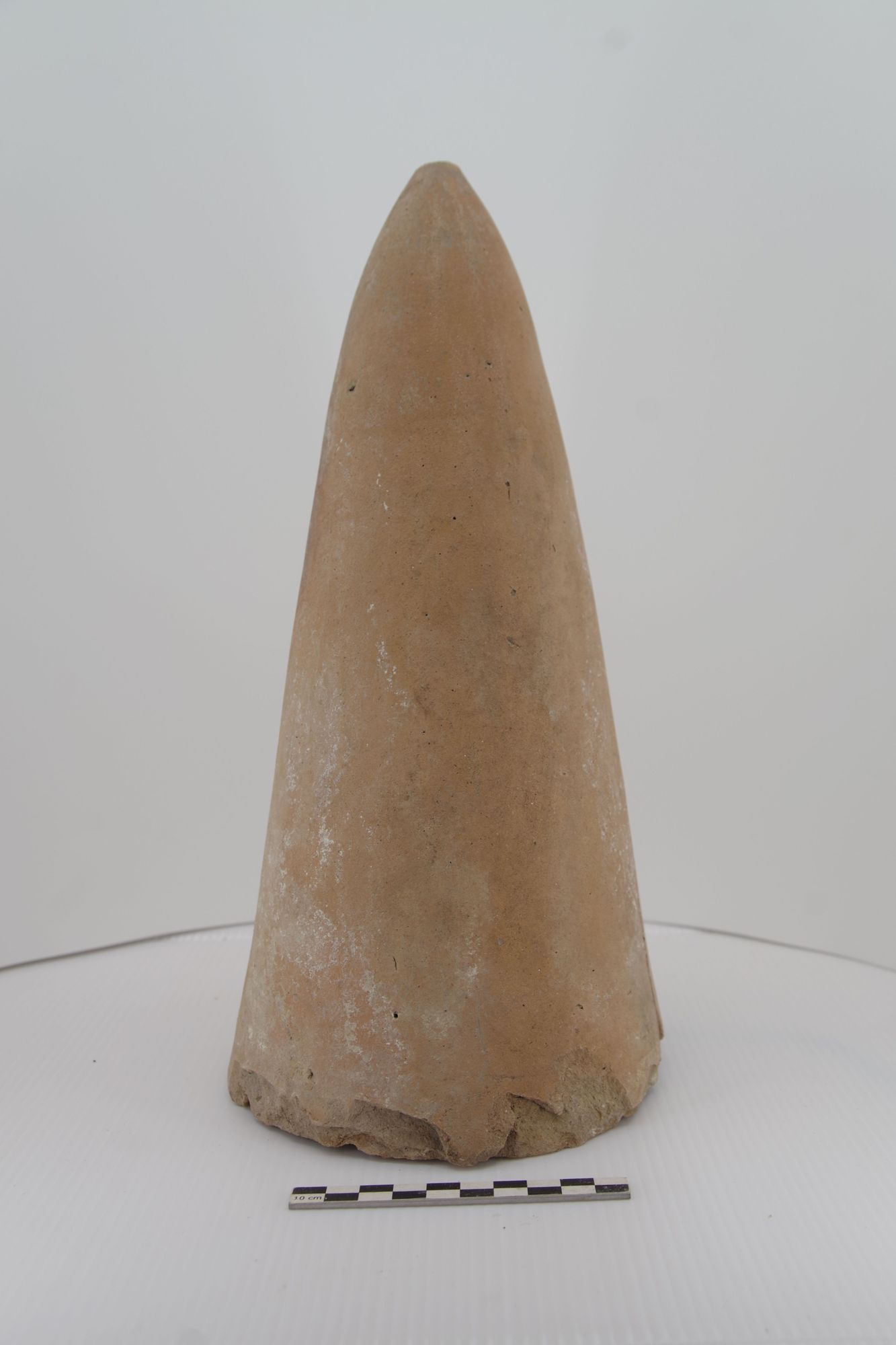 Forme à sucre Cône à sucre : type de forme à sucre (crédits : Service d'archéologie, 2023). Poterie utilisée pour la fabircation/décantation du sucre de betterave ou de canne.