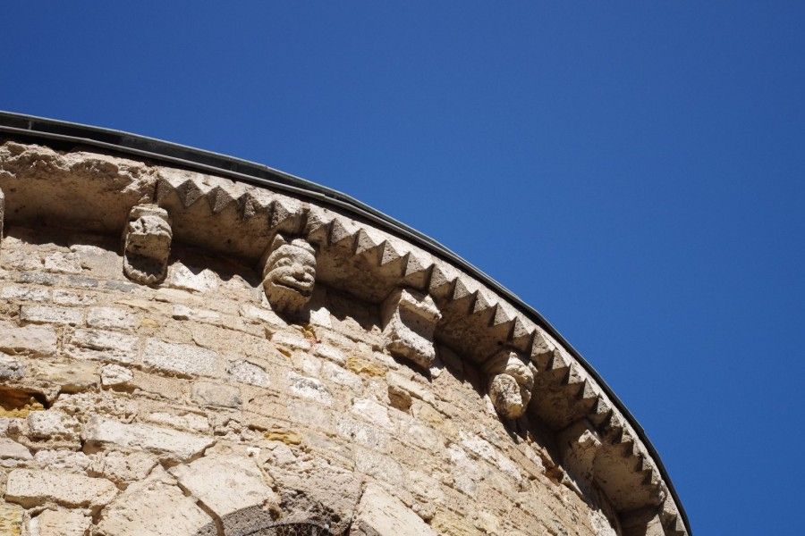 Modillon Corniche d'une absidiole du chevet de l'église Saint-Pierre-le-Puellier à Orléans, reposant sur une série de modillons sculptés (crédits : Service d'archéologie, 2016) Petit support placé sous une corniche.