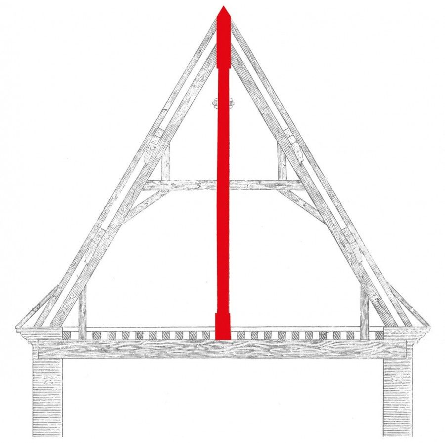 Dans une charpente de comble, pièce de bois verticale qui entre dans la composition des fermes à l’axe desquelles elle se place généralement.