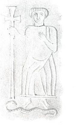 Tardo-antique Symbole chrétien retrouvé en décor sur une céramique à Orléans : personnage (Christ ? évêque ?) écrasant un serpent (crédits : Mémoires de la Société des Antiquaires de France, 1846) Voir Antiquité Tardive